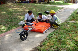 Ground Penetration Radar (GPR) utilizes pulsed high frequency radio waves to probe the subsurface without disturbing the ground. The GPR data are collected continuously as the instrument is towed over the ground surface and provides a real-time graphic image of the subsurface.